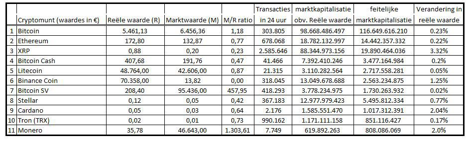 Reële waarde van Bitcoin en de top 10 cryptomunten